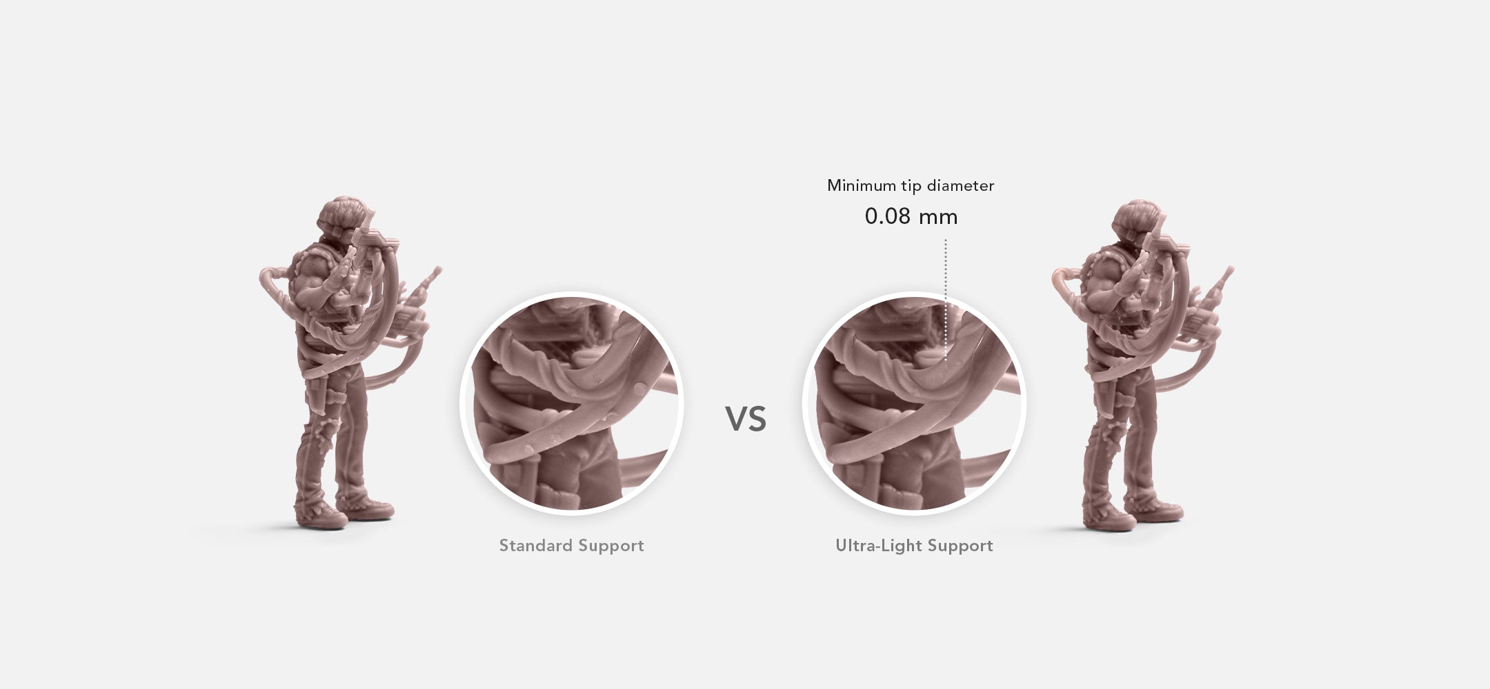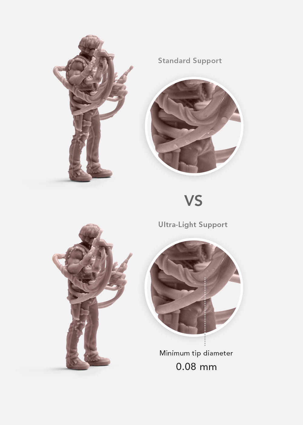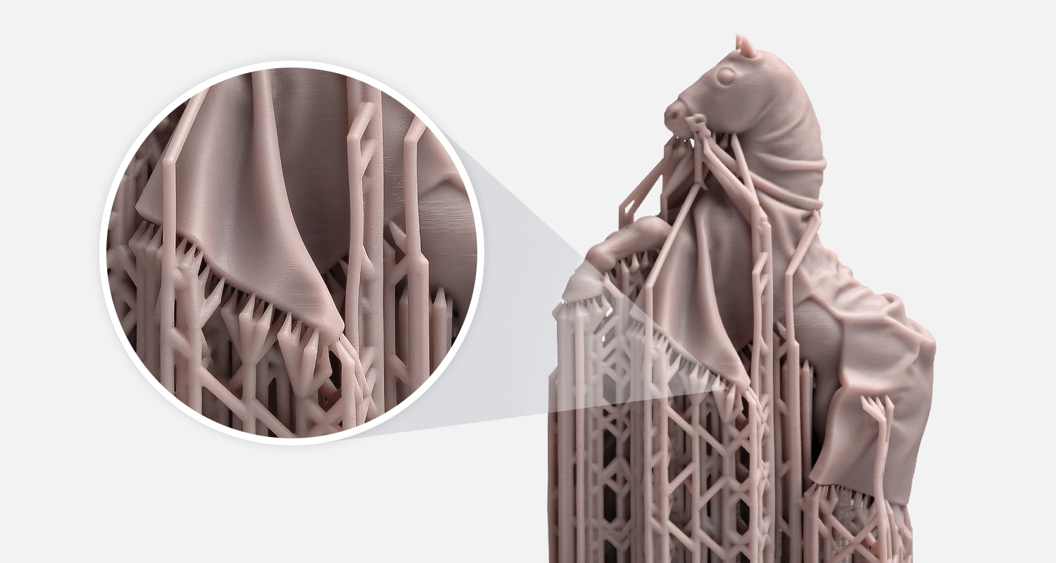 RPG Resin features ultra-fine support tips as small as 0.08 mm — reducing contact points to protect fragile surfaces. Supports snap off cleanly, leave fewer marks, and cut down on cleanup time, making it one of the best resins for 3D printing miniatures.