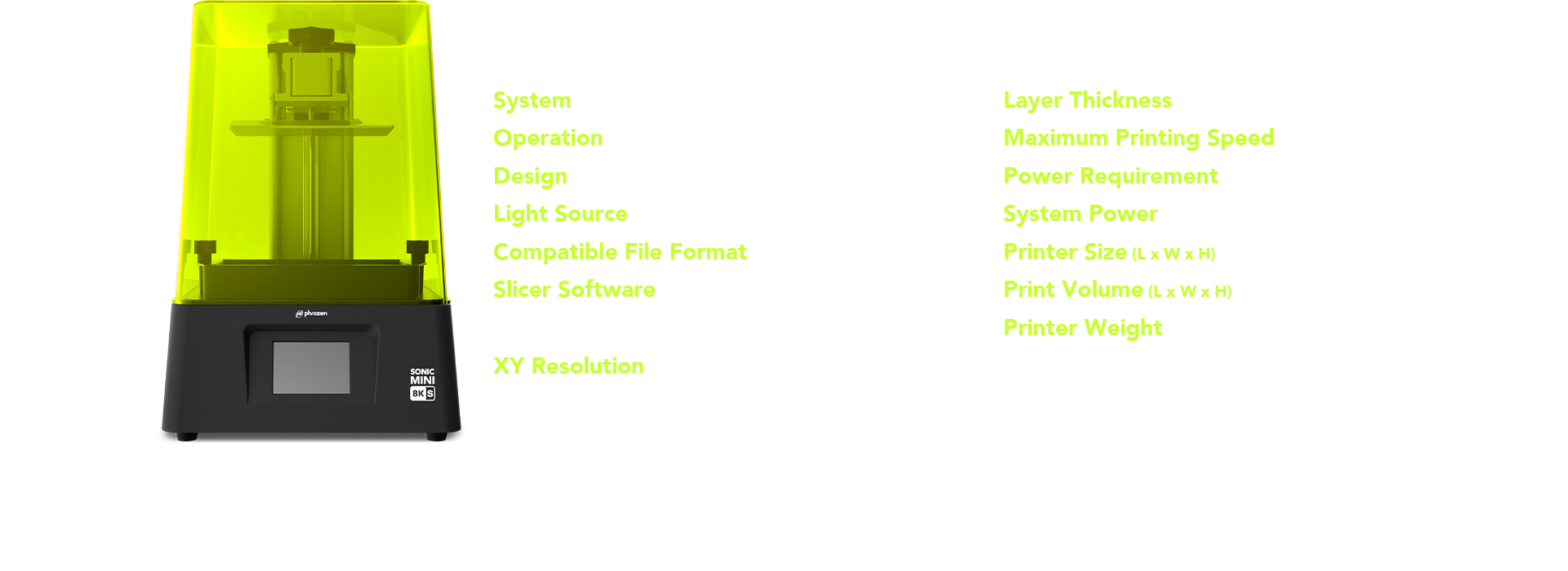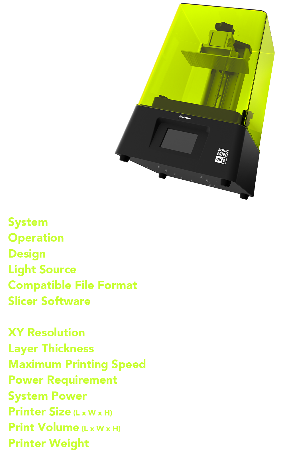 | Slicer Software | Chitubox, Lychee, VoxelDance Tango, and others | |