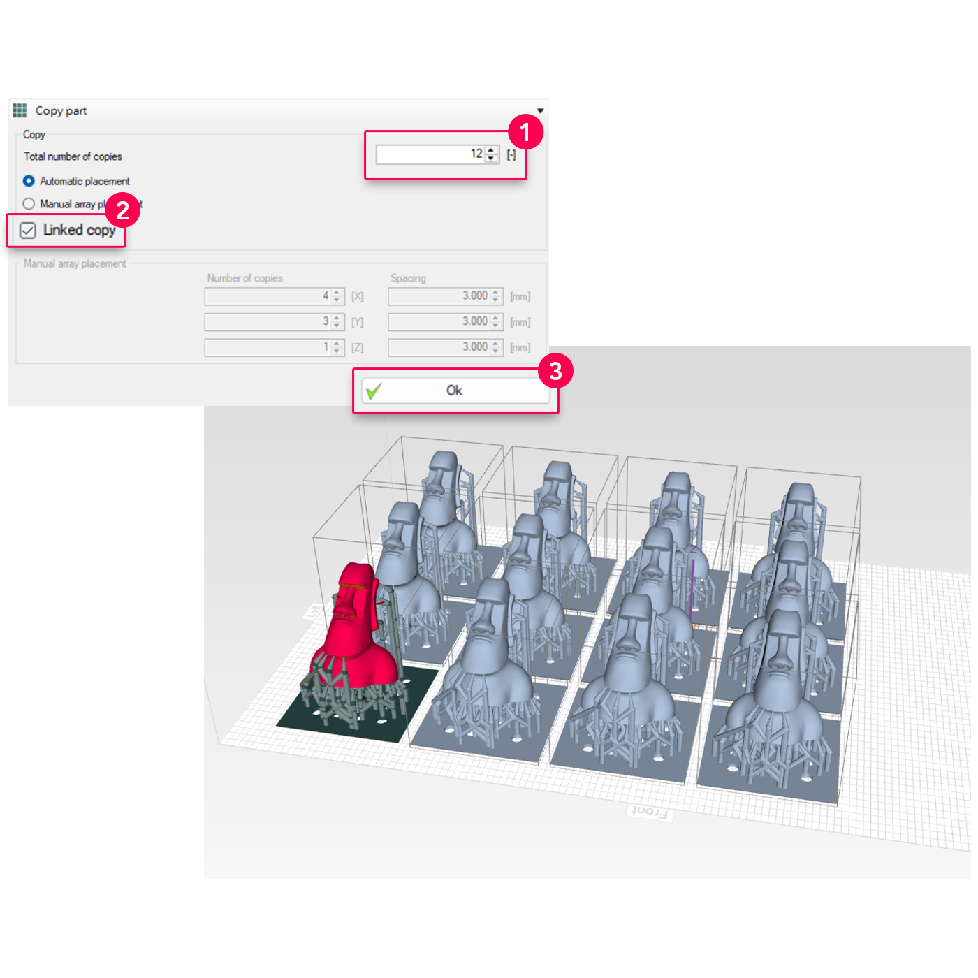 Adjust duplicated model settings simultaneously with the original one. No need to redo your support and orientation each time.