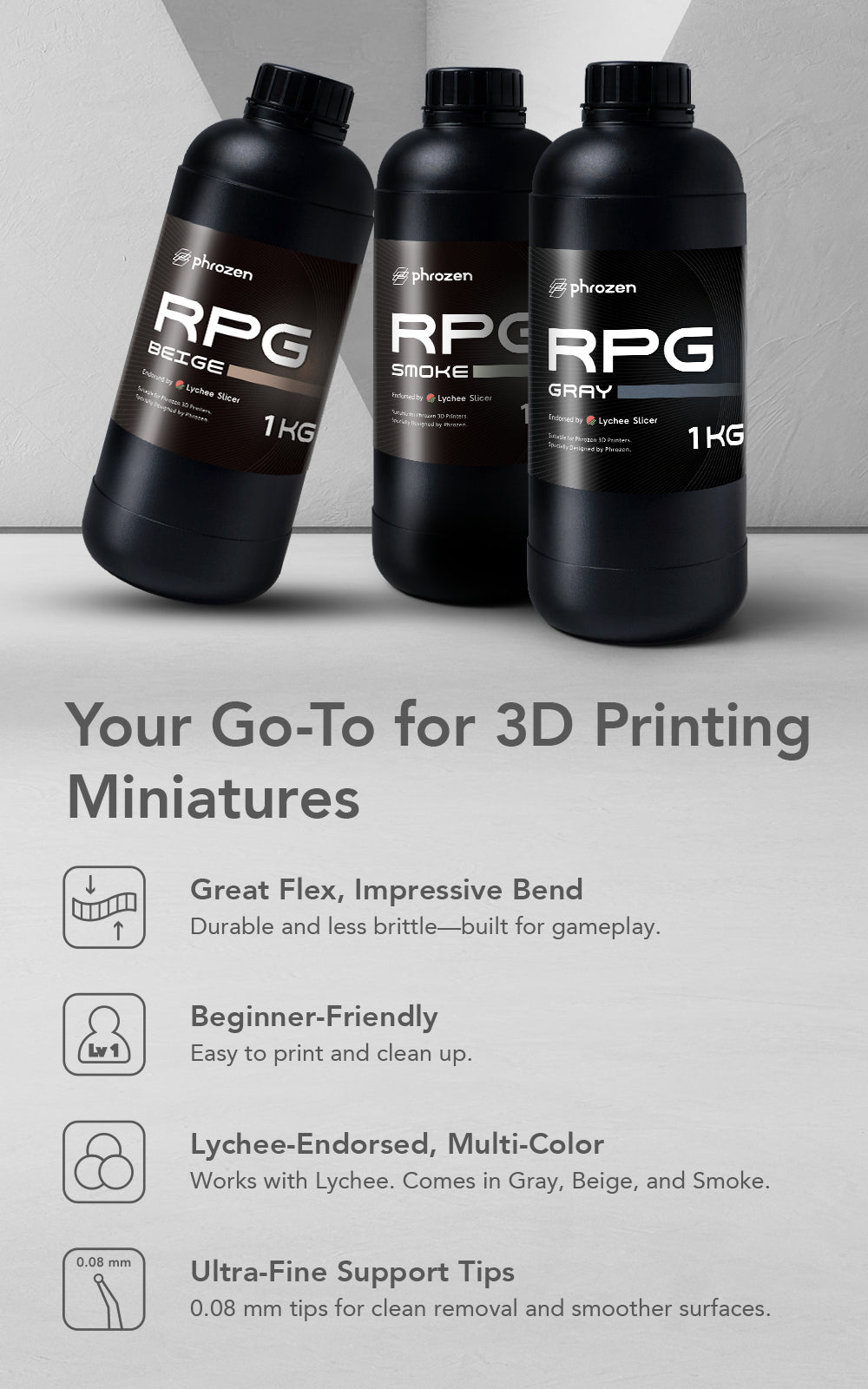 Built for the battlefield, Phrozen RPG Resin combines impact resistance with just the right amount of flex—making it one of the best resins for tabletop miniatures that are handled, moved, and played with often.
