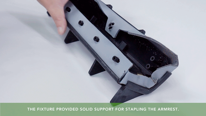 See how one of our users — a car manufacturer in Taiwan incorporated Tough 100E 3D printed fixtures to help their factory produce car armrests.